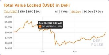 Далее рассмотрим хронологию перехода DeFi от зимнего хайпа к летнему. Хронология этого перехода представлена в виде серии слайд-шоу, отображающих динамику общей суммы заблокированных в DeFi средств, исчисляемых в USD, ETH и DAI (источник - сервис DefiPulse). DAI - это те самые фантики-"стейблкоины" DeFi-флагмана первой половины 2020 года MakerDAO, которые тот раздавал в обмен на "залог" криптовалюты, главным образом - на "залог" eth.